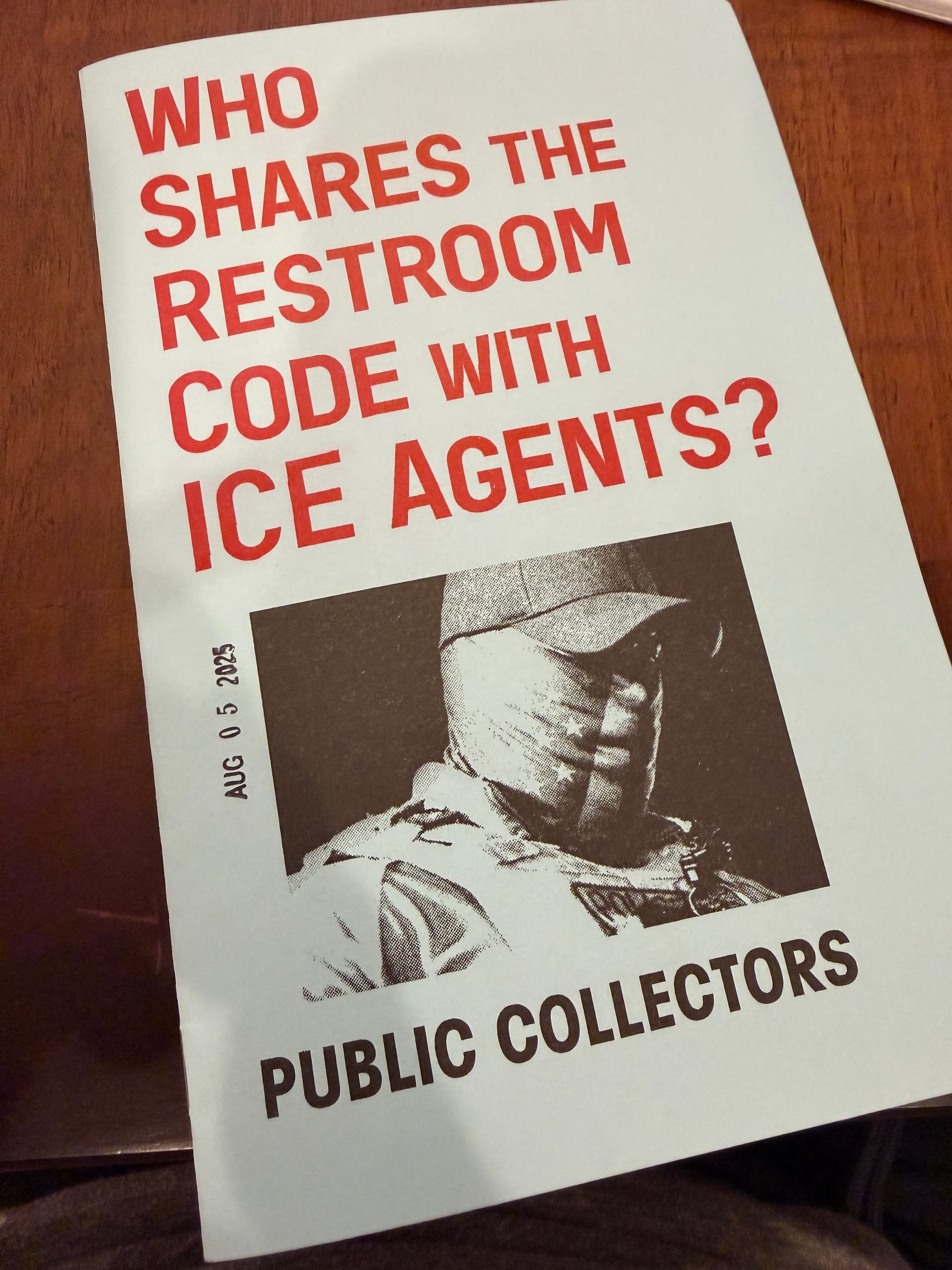Speaking of ICE and Vermont, I picked up this booklet at Tunnel Books during my trip to St. Johnsbury. It‘s a collection of questions like, “Who are the friends of ICE agents?” “Who are their family members that know what they do and say nothing?” ”How do we make this the most embarassing job in the world to have?”